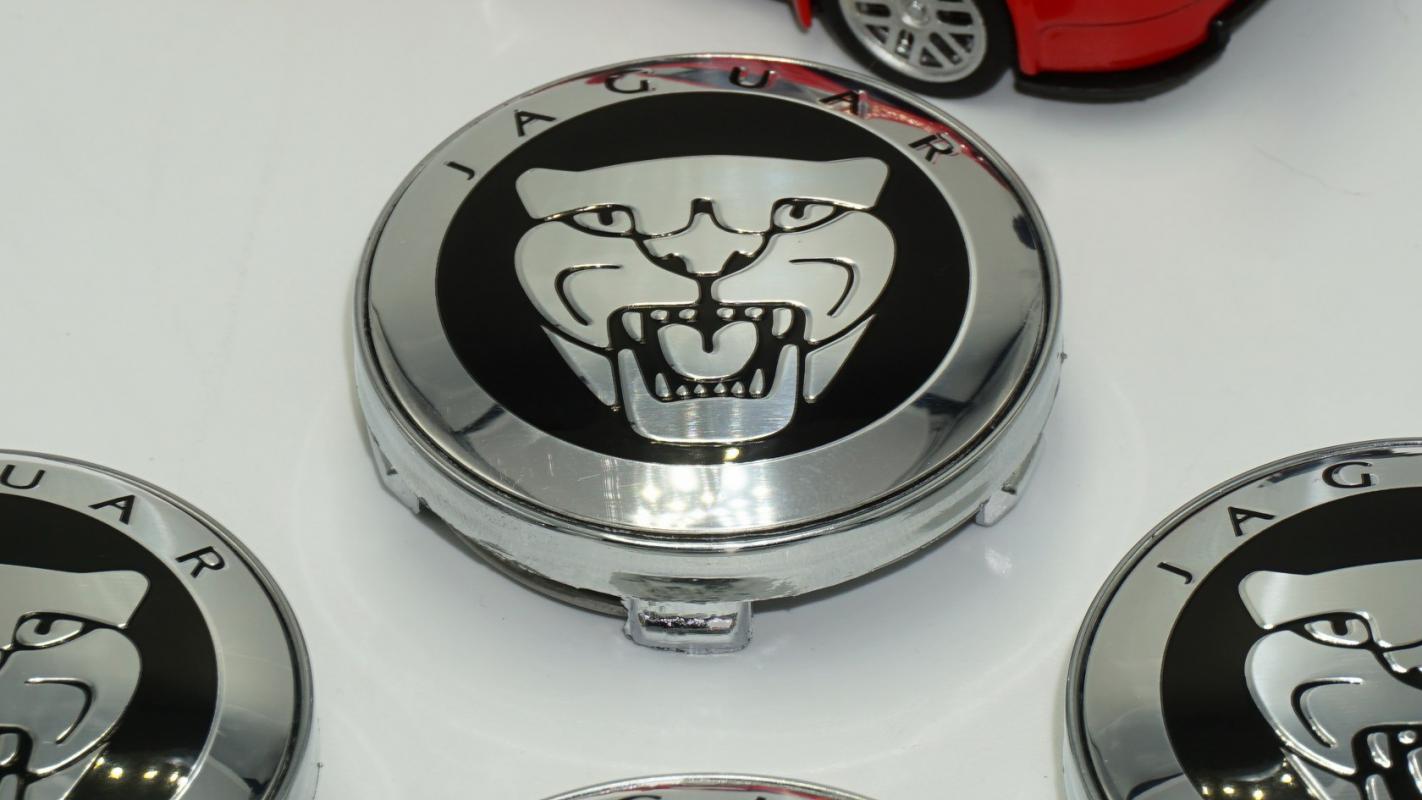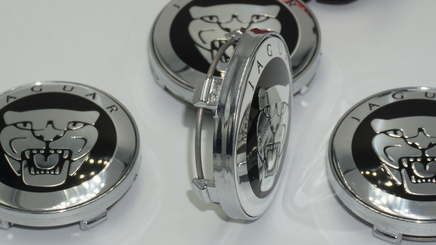 Jaguar Jant Göbeği Siyah Panter Logo Kapak Seti 60mm